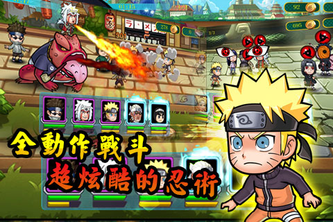 完全采用動作戰(zhàn)斗模式,最多10名角色同時登場的大亂斗,帥氣的角色,流暢的動作,炫酷的忍術(shù),讓你熱血沸騰。