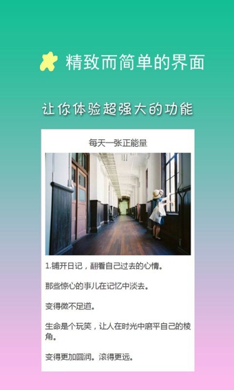 靜靜的夜里用心感受文字的魅力,文藝小清新專(zhuān)屬美文閱讀工具。提供溫暖而又唯美的文章,觸碰心底最柔軟的部位,帶來(lái)最真的感動(dòng)。
