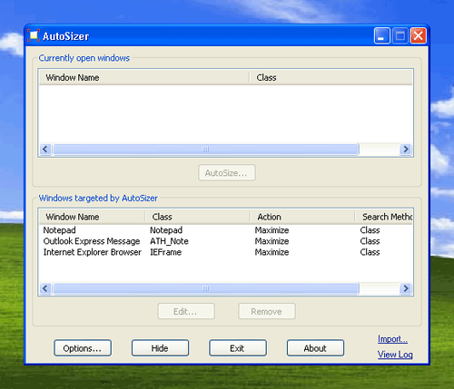 AutoSizer 窗口大小自動調(diào)整器是一個功能獨特的系統(tǒng)輔助軟件.它可以自動調(diào)整您指定的任何窗口的大小.例如,某些網(wǎng)絡(luò)瀏覽器會在一個非最大化的窗口中打開.使用AutoSizer 窗口大小自動調(diào)整器,您可以設(shè)置每當打開這些窗口時自動最大化.它對于幾乎任何程序都能起作用,包括網(wǎng)絡(luò)瀏覽器,記事本,等等.AutoSizer 窗口大小自動調(diào)整器駐留運行在系統(tǒng)托盤中(緊靠時鐘),因此它不會在工作時擋住您的視線.同時它還提供2種搜索窗口的模式:按照類名和按照窗口標題