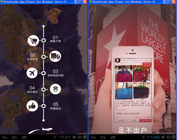 第四步:成功后,打開安卓模擬器BlueStacks,點圖標,就可以電腦上運行《海外掃貨神器》這款軟件啦!