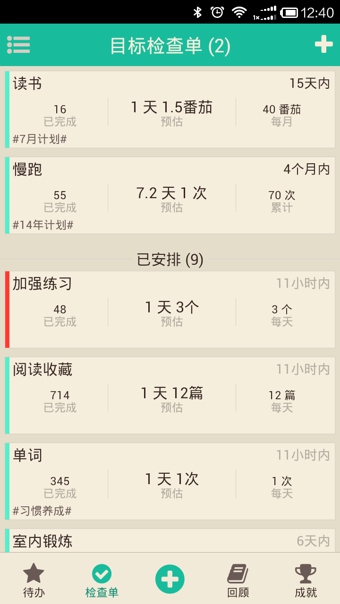 行事易是一個(gè)具有優(yōu)先級的每日待辦清單,可作為每日日程的安排。更為突出的,它還是個(gè)基于SMART原則的目標(biāo)管理系統(tǒng)。您可以設(shè)置自己的目標(biāo),系統(tǒng)將為您自動產(chǎn)生目標(biāo)檢查單,再把檢查單安排到當(dāng)日的待辦中,去完成目標(biāo)的一小步,讓您積少成多最終完成目標(biāo)。而在完成目標(biāo)的過程中,您還可以隨時(shí)查看到目標(biāo)的進(jìn)度和打卡記錄,激勵(lì)您向目標(biāo)前進(jìn)。