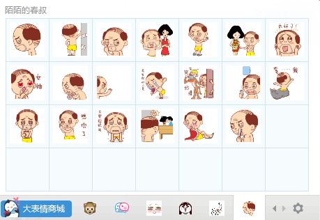 春叔表情包下載20P 免費版 春叔表情包下載是一款非常搞笑的表情包。該表情包的主人公是一位經(jīng)常賣萌的蘿莉大叔,這位大叔它會各種搞怪賣萌的表情,跟憨豆先生有的一拼。喜歡的不妨下載用用。