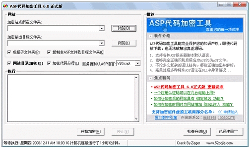 ASP代碼加密工具 V6.0 簡體中文綠色特別版 ASP代碼加密工具全球最好的一款ASP代碼加密工具,她能完全保護您的知識產(chǎn)權,即使代碼被下載,也無法出真正源碼,完美的解析處理,絕對是您加密ASP代碼的唯一選擇。