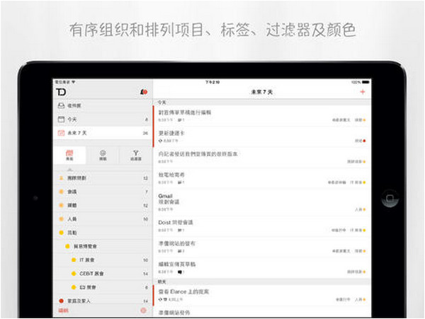 Todoist:待辦事項(xiàng)列表iPad版無論身在何處,您都可以在需要時(shí)使用這款完美的待辦事項(xiàng)列表應(yīng)用:通過您的iPhone、iPad、桌面、瀏覽器、Gmail及其他更多平臺(tái)。【軟件特點(diǎn)】