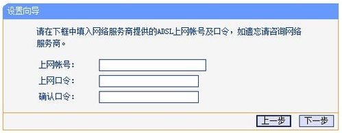 設(shè)置完成后,單擊下一步,接著輸入自己的寬帶賬號(hào)和密碼并再次點(diǎn)擊“下一步”