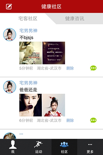 2、用戶通過宅客運動跟好友分享自己的健身減肥體驗。