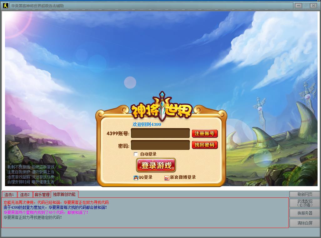 神將世界超級連擊輔助下載 2.5 官方最新版 神將世界超級連擊輔助是神將世界游戲中的一款連擊輔助工具。該工具可以幫助玩家在游戲攻擊時可以達(dá)到連擊的效果,并且還有特制的音樂特效,讓玩家在游戲中可以進(jìn)行爽快的攻擊。