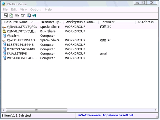 NetResView 顯示局域網(wǎng)上的所有資源,包括所有工作組和域