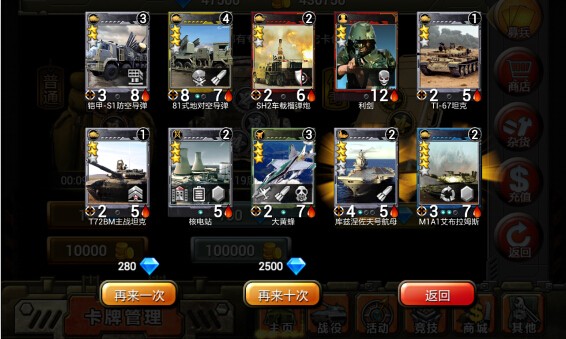 要想獲得戰(zhàn)斗勝利,需要有強(qiáng)大的陣容。到商店去抽卡試試手氣吧~在這里,小編需要提醒大家~有錢的時(shí)候,不妨試試十連抽,有可能會(huì)有大驚喜哦~據(jù)說(shuō)十連抽保底一張五星卡,并且還有機(jī)會(huì)獲得3階4階的五星卡!大家要不要來(lái)蹭蹭運(yùn)氣呢?就算沒(méi)有錢商城也會(huì)定時(shí)開(kāi)啟免費(fèi)抽卡,運(yùn)氣要是好,誰(shuí)也擋不住。