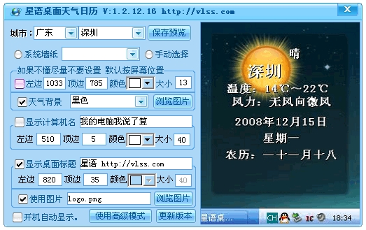 星語(yǔ)桌面天氣日歷 不占用任何系統(tǒng)內(nèi)存與CPU把天氣預(yù)報(bào)和日期設(shè)置在桌面上