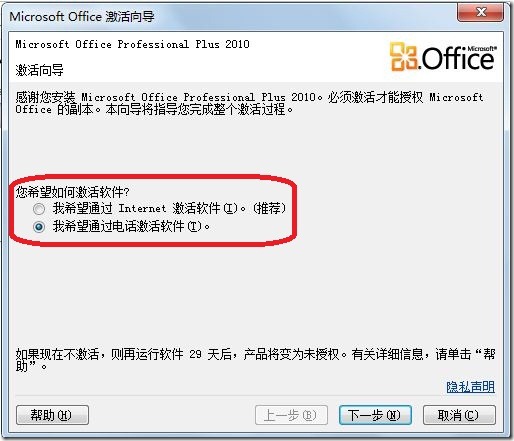 1、在激活向導頁選擇“我希望通過電話激活軟件”