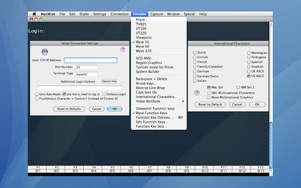 Macwise允許Macintosh作為終端–直接連接到主機計算機,調(diào)制解調(diào)器,局域網(wǎng)或互聯(lián)網(wǎng)與telnet或SSH安全外殼。Mac wise支持視頻屬性如昏暗,相反,強調(diào),132列的模式,從主計算機發(fā)送受保護的領(lǐng)域和圖形的特點,以及增強視角模式。