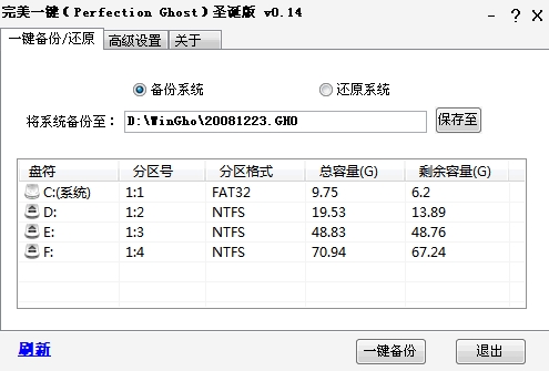 完美一鍵(Perfection Ghost)是一款設計專業(yè)化,使用傻瓜化的超強 Windows 系統(tǒng)備份、還原的綠色工具,讓你無論是將備份或者還原系統(tǒng),或者是安裝 Ghost 版的操作系統(tǒng)都變得簡單、快速。