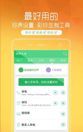 【分類(lèi)眾多,量身定制】眾多鈴聲分類(lèi),曲庫(kù)最全,為你量身定制專(zhuān)屬個(gè)性鈴聲。
