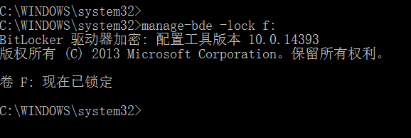 bitlocker磁盤解鎖后的鎖定 cmd命令?