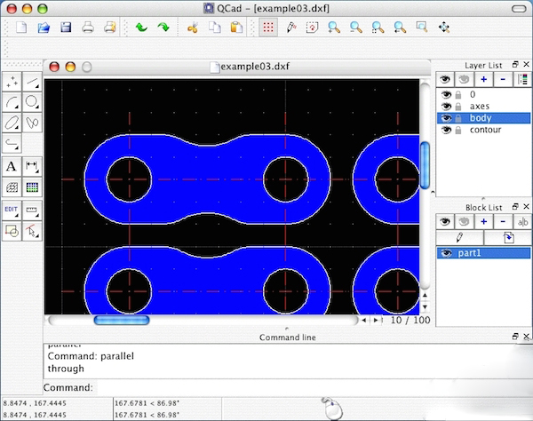qcad是mac平臺(tái)上一款輔助設(shè)計(jì)的軟件,這款軟件的界面非常的簡潔,除了輔助設(shè)計(jì)之外,沒有其它多余的功能,使用戶可以快速地使用這款軟件將自己設(shè)計(jì)的東西以不同的方式表現(xiàn)出來,讓他人可以更清楚地看到你想表達(dá)的內(nèi)容。