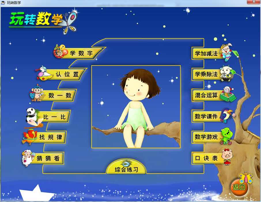 本模塊囊括數(shù)學(xué)啟蒙的眾多知識,包括:學(xué)數(shù)字、認(rèn)位置、數(shù)一數(shù)、比一比、找規(guī)律、猜猜看、學(xué)加減法、學(xué)乘除法、混合運(yùn)算、數(shù)學(xué)課件、數(shù)學(xué)游戲以及數(shù)學(xué)里面的綜合練習(xí)等。