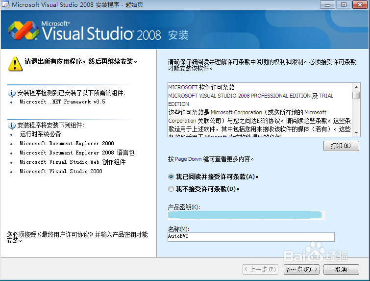 選擇“安裝vs2008”進(jìn)入安裝界面;