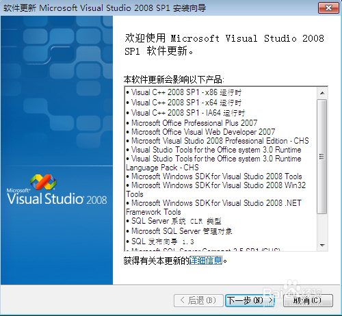 Vs2008已經(jīng)安裝完成,但是為了讓Vs2008的兼容性很好,還需要安裝vs的SP1補(bǔ)??;