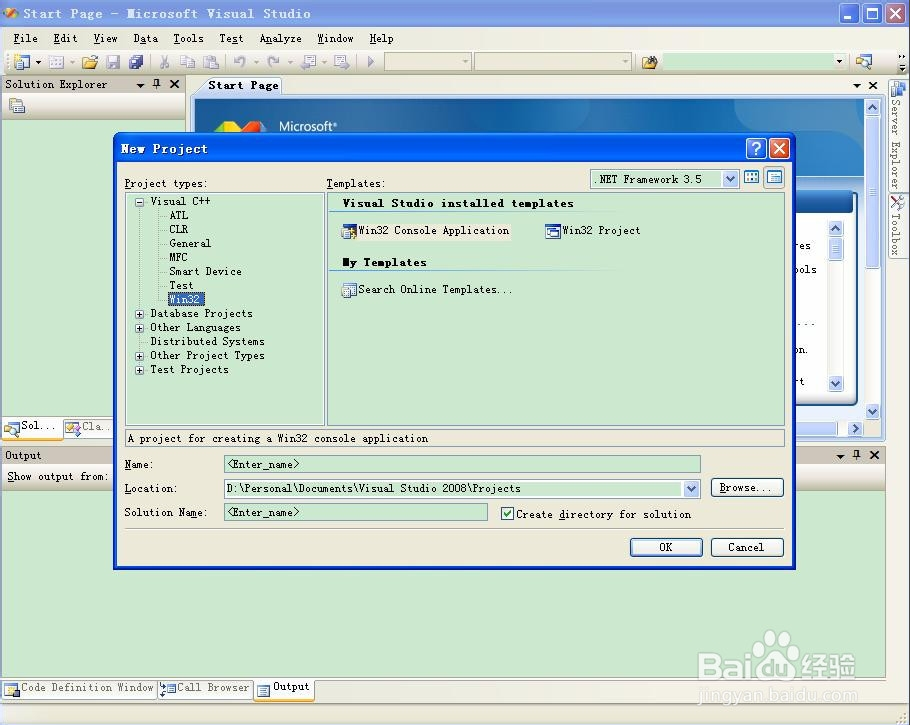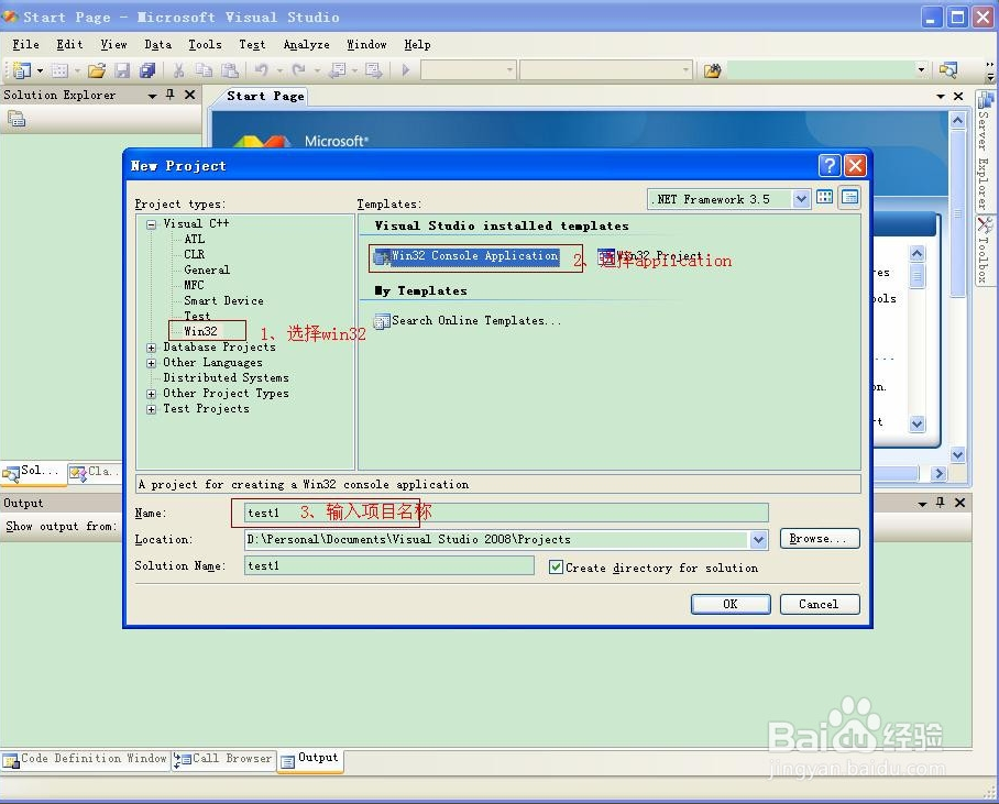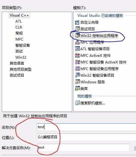 選擇Win32 console application,然后輸入項目名稱,點(diǎn)擊OK