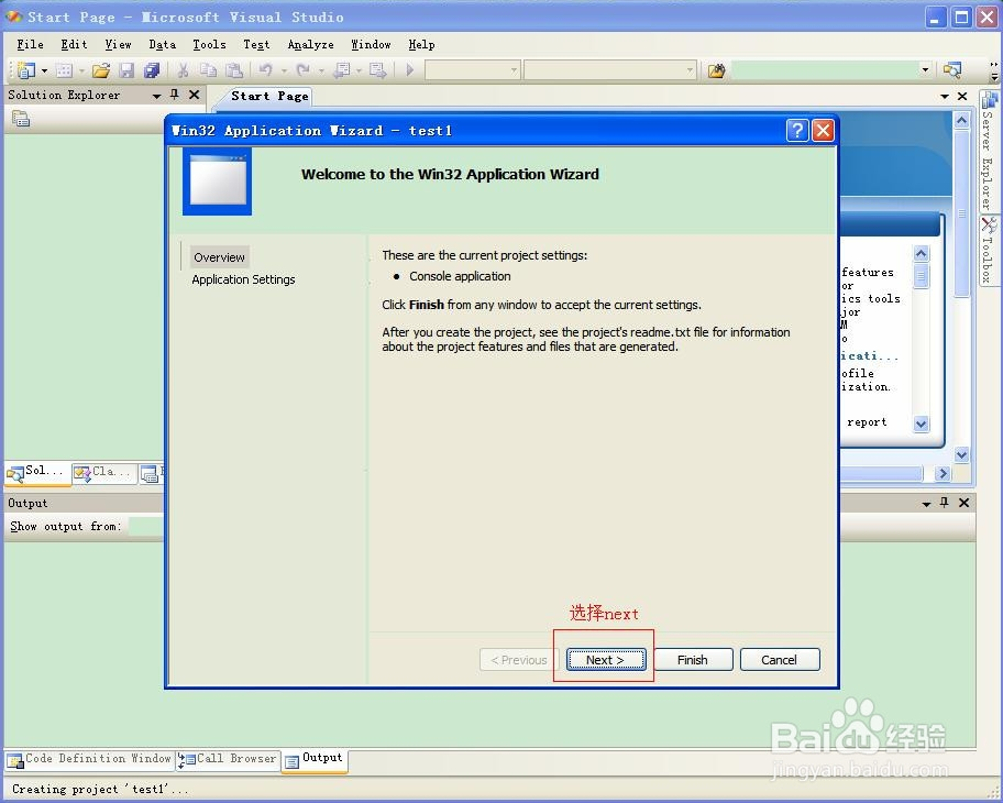 完成上述信息后,VS2008會彈出項目應(yīng)用向?qū)Ы缑妫@里選擇Next