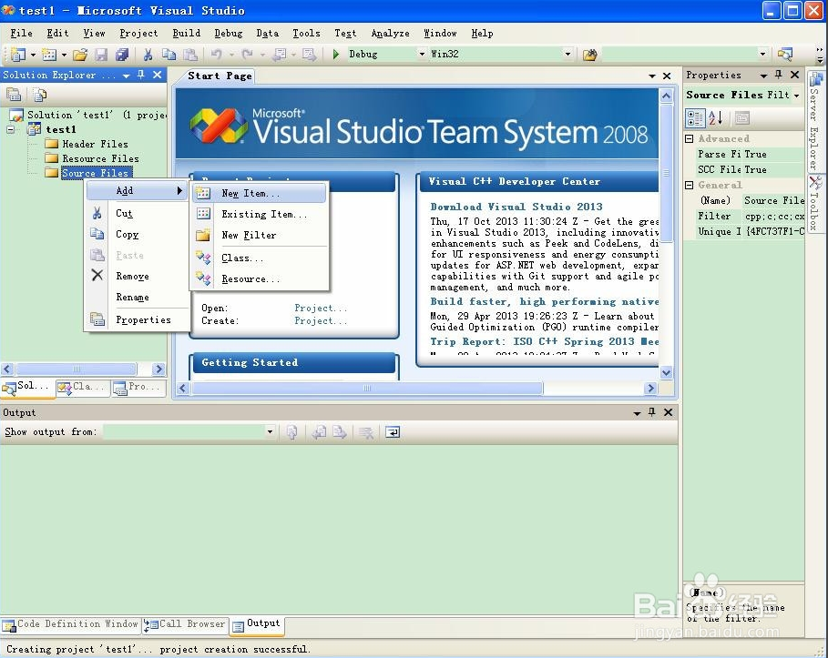 上述工作已經(jīng)創(chuàng)建了一個項目,現(xiàn)在 右鍵源文件夾(Source Files)->Add->New Item 創(chuàng)建一個源文件