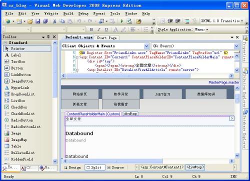 Web設(shè)計器提供了分割視圖編輯、嵌套母板頁、以及強(qiáng)大的CSS編輯器集成。