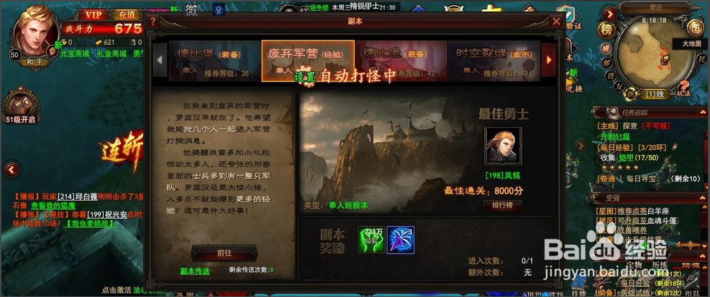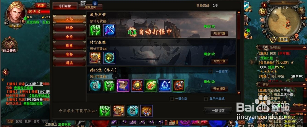 4.魔窟,每隔2個小時會開啟30分鐘的魔窟時間,在活動快開始的時候,提前準備好,看到活動公告在什么地圖,第一時間的過去找傳送門。分秒必爭。