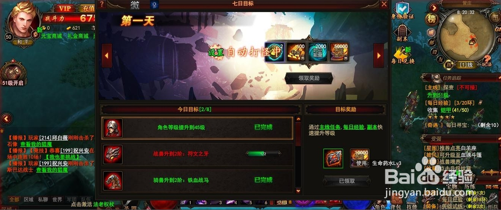 這些是每天必做的經(jīng)驗活動,而其余空閑時間,就可以去根據(jù)自己的等級和戰(zhàn)斗力去野外掛機刷怪了。刷怪看似經(jīng)驗少,但是如果有足夠的戰(zhàn)力支撐,一個小時所累積下來的經(jīng)驗也是非??捎^的。