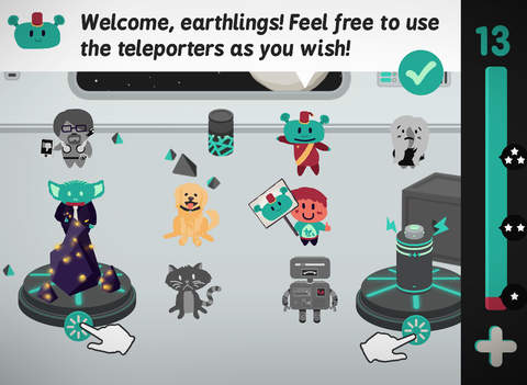 游戲中有各種各樣的角色設(shè)定,諸如“打扮干凈的怪物”、“愛(ài)喝酒的長(zhǎng)頸鹿”、“愛(ài)好音樂(lè)的外星人”,甚至“奇葩的人類”等。而舉辦派對(duì)的地方也是相當(dāng)另類,時(shí)而在外太空,時(shí)而在神秘森林,時(shí)而在某一間房間里。其中,每個(gè)成員都會(huì)用“對(duì)話泡泡”的形式告訴你他們想要的東西?;蛘呤窍胍玫近S金條的、想要一只貓的,又或者是想要得到一個(gè)吉他,幻想自己演奏樂(lè)曲等。而你需要做好主人翁的職責(zé),滿足他們的所有要求,在一個(gè)“派對(duì)”格子中,將它們重新排列好。