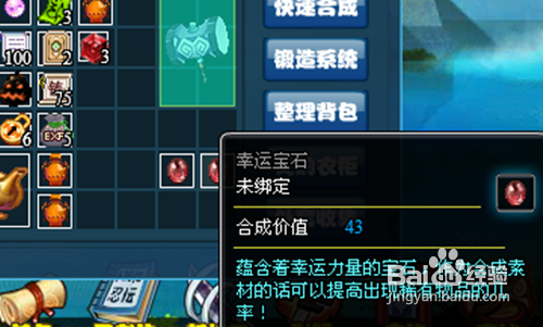 1.用合成價值43的幸運寶石合成,也可以混合橙裝、金裝合成