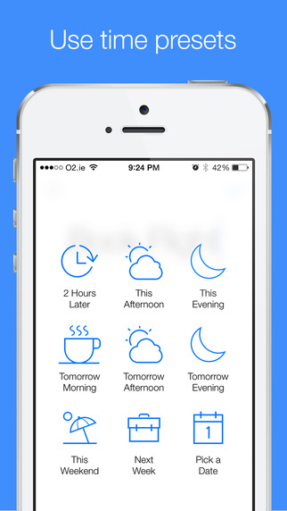 提醒應(yīng)用Later新上架的一款非常棒的快速添加提醒的效率應(yīng)用,Later走的是極簡主義風格。盡管作為藝術(shù)流派的極簡主義毀譽參半,但是在設(shè)計和建筑這種逃不開功能性的創(chuàng)作領(lǐng)域,提醒應(yīng)用Later推崇的極簡確是主流路線。所以這款名為——Later 的提醒應(yīng)用整體感觀也確實不錯。Later 的主界面只有兩個必要元素,一個是樹立在中間「碩大」的藍色光標,另一個是左上方的一個功能按鈕,沒有其它冗余元素來擾亂你心。另外,Later 采用的是類似 Drafts「先輸入,后執(zhí)行」的操作邏輯方式。擊右上角藍色的小對勾,就會彈出可視化很強的 9 個時間區(qū)。通過點按選擇方便快速的添加提醒任務(wù)至「2 個小時之后」「今天下午」等幾個時間區(qū)。這個界面很像 Mailbox 中向左長滑郵件彈出的「稍后處理」功能。