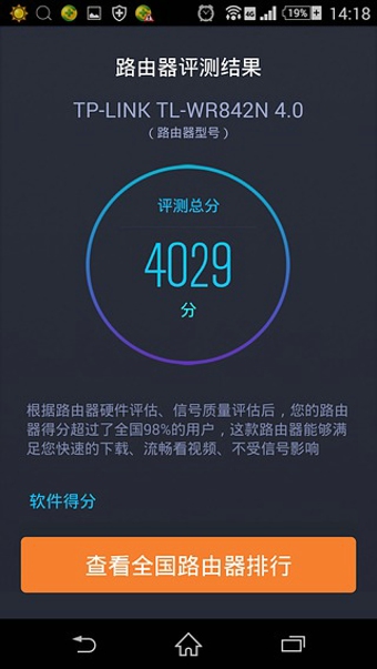 路小胖安卓版是一款非常專業(yè)的路由器評(píng)測軟件,可以快速的對(duì)路由器RAM內(nèi)存、緩存、無線傳輸?shù)刃阅苓M(jìn)行測試,并且給出相應(yīng)的得分,以此來判斷路由器的性能好壞。