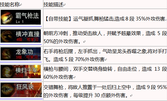 以長槍為武器,身著重鎧,招式大開大闔,如龍入海,似虎下山,近戰(zhàn)無人能敵。