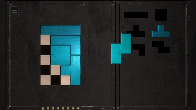 整個(gè)游戲畫(huà)面簡(jiǎn)單利落,非常的質(zhì)樸,背景顏色非常的暗給玩家制造了一個(gè)相對(duì)寧?kù)o的空間與環(huán)境,左邊放置的是一個(gè)國(guó)際象棋式樣的棋盤(pán),右邊則放置著該關(guān)卡所需要的各種形狀的俄羅斯方塊,僅用一種比較普通的顏色進(jìn)行顯示,倒是給人的質(zhì)感很不錯(cuò)。只有放置方塊時(shí)所發(fā)出清脆的聲響,沒(méi)有任何的音樂(lè),在這種環(huán)境下可以令人更靜心地進(jìn)行游戲。游戲的特色在于玩法相當(dāng)?shù)慕?jīng)典,需要玩家對(duì)方塊的變化和組合相當(dāng)?shù)氖煜?,同時(shí)對(duì)棋盤(pán)的空間感有著了解,游戲開(kāi)始后畫(huà)面中的左右兩邊分別出現(xiàn)一個(gè)國(guó)際象棋的棋盤(pán)和數(shù)塊俄羅斯方塊,玩家的任務(wù)是需要在這個(gè)棋盤(pán)中放置各種俄羅斯方塊將其將其嵌滿,而右邊將會(huì)提供數(shù)塊各種形狀的俄羅斯方塊,這些俄羅斯方塊一定是和棋盤(pán)的大小、格子數(shù)量、位置是完全吻合的,玩家的目標(biāo)就是將俄羅斯方塊逐個(gè)的組合起來(lái),無(wú)論是大小與形狀完全吻合棋盤(pán),并將其完全對(duì)稱的放入棋盤(pán)中。