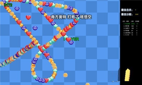 1、玩家需要盡可能的去多吃一些糖果,這樣才可以讓自己越來越長,走出不一樣的路行。2、用你的蛇皮身子,盡情的如圍剿對面的敵人,可以將他們逼得無路可逃,吞并掉它們。