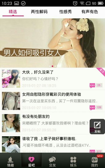水葫蘆是一款倡導(dǎo)兩性健康生活的移動(dòng)小助手,隨時(shí)教你如何用科學(xué)的方法讓生活變得更有情趣,愛吧交友揭秘隔壁老王矮瘦挫窮但桃花運(yùn)不斷的驚天秘密!水葫蘆不能給你買房買車,但能幫你擺脫單身,滋潤生活增進(jìn)夫妻感情。【情趣商城】我們推薦的不是情趣用品,而是生活質(zhì)量!