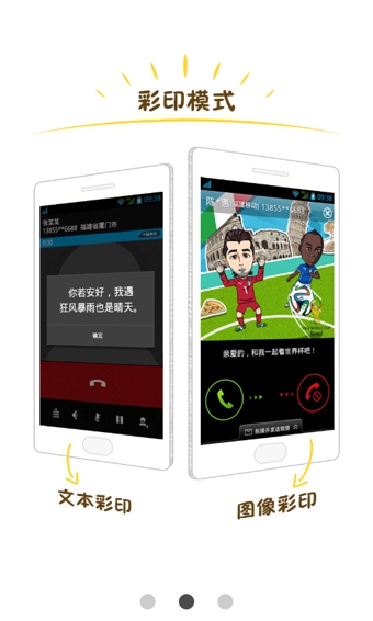 ★彩印2.4全新版本震撼上市,讓小伙伴們因為你的來電都驚呆了!!★通話秀簽名,來電顯個性,快安裝彩印客戶端,你的來去電將不再素顏!