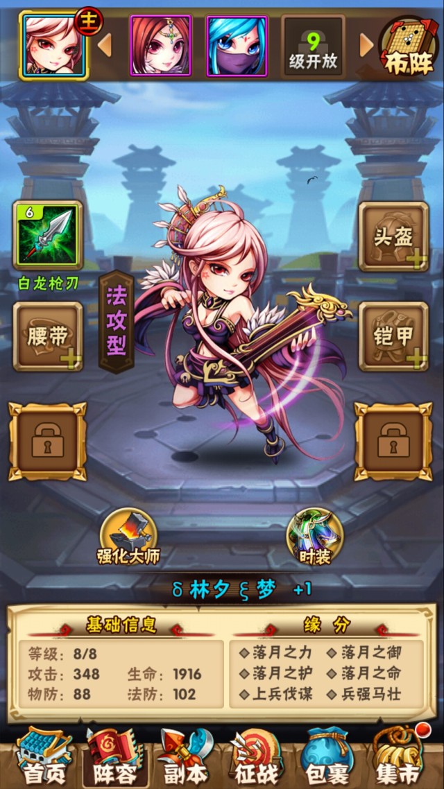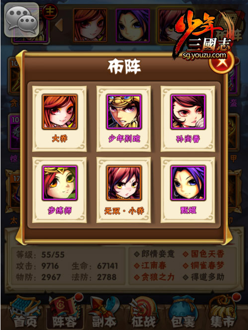 武將緣分:一個籬笆三個樁,一個好漢三個幫。不同的武將之間有不同的緣分,當(dāng)滿足緣分條件的武將同時上陣時,他們的能力都會大大提升,通關(guān)副本簡直輕松加愉快。