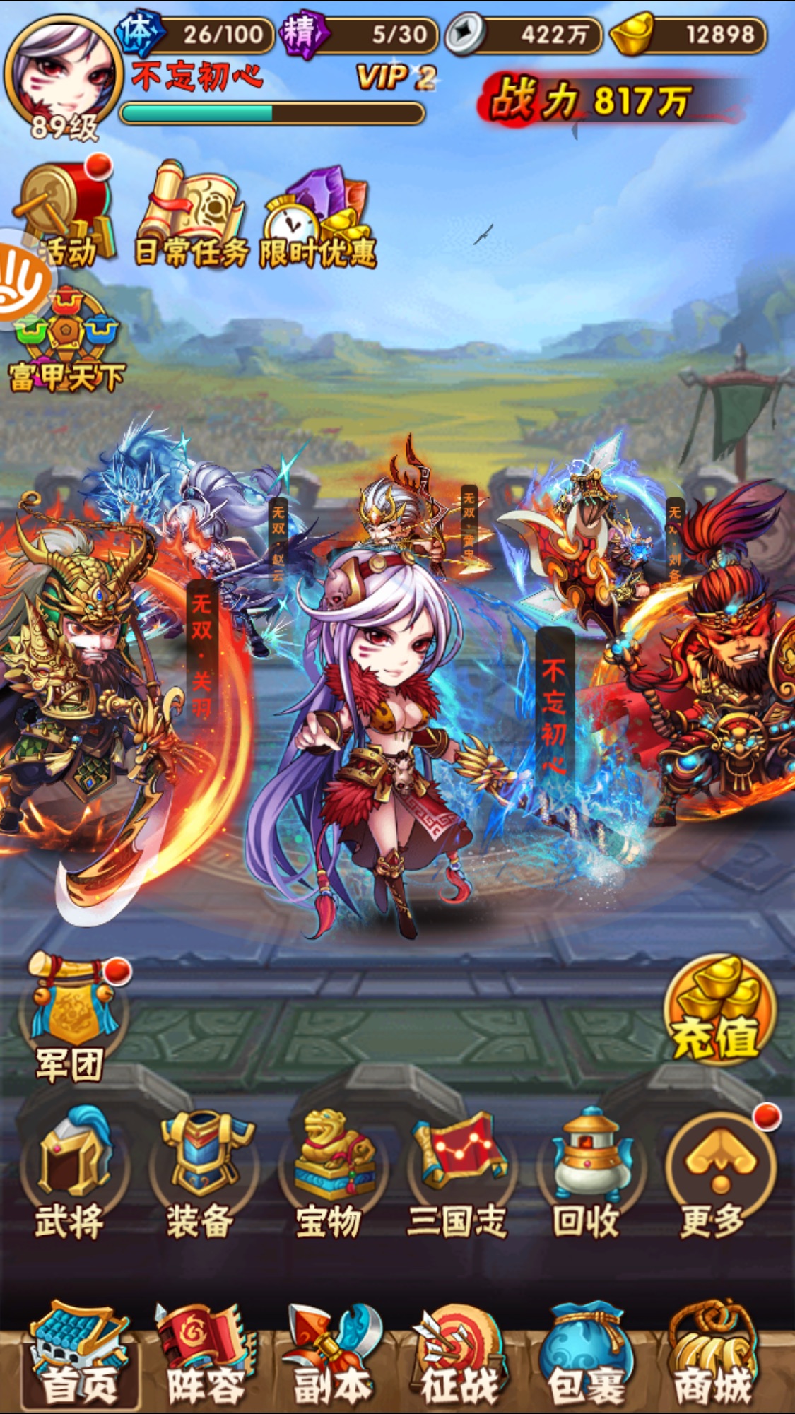 隨著游戲的不斷深入我們還會解鎖各種全新的玩法,“寶物”、“三國志”、“回收”、“征戰(zhàn)”等各種給力活動等待大家的解鎖和體驗。