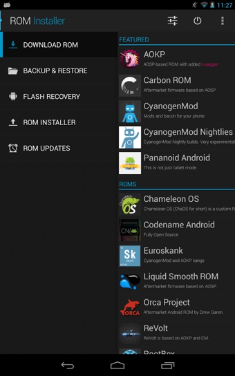 ROM Installer就如同其名字一樣,是用來安裝ROM的,但功能又不止可以安裝ROM。實際上,ROM Installer可以提供完整的一鍵刷Recovery、刷ROM、刷Google服務GMS、更換字體等方案,可謂是非常逆天。而且,ROM Installer的開發(fā)者和Cyanogenmod小組他們是一撥的,提供的資源都是官方的CM、AOKP等ROM,非常靠譜。
