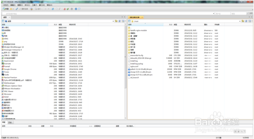 4、連接上FTP服務(wù)器之后,窗口右側(cè)會出現(xiàn)FTP服務(wù)器目錄和文件列表,右鍵左側(cè)本地將要上傳的文件點擊”傳輸“就能將本地文件傳輸?shù)竭h程服務(wù)器,或者使用左右拖拽的方法也可以上傳下載文件。