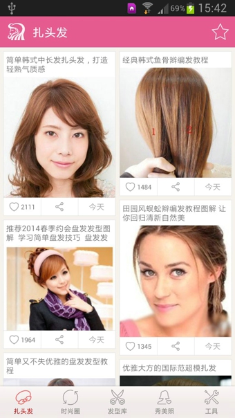 扎頭發(fā):提供超過3000種不同發(fā)飾的扎頭發(fā)教程,并且每天更新新扎法。時(shí)尚圈:提供最新的時(shí)尚發(fā)型咨詢,發(fā)型設(shè)計(jì)師好幫手