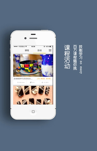 2.全新的頻道劃分,改版為“課程”“達(dá)人”“我的”三個(gè)頻道,重新定義興趣一站式約課平臺(tái);