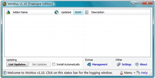 wowus(魔獸世界更新系統(tǒng))幫助您保持對最新的插件通過掃描來更新,并顯示所需要更新. 你可以選擇更新適用wowus然后下載并安裝