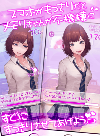 《回憶醬(メモリちゃん)》是一款可以改善手機運行的流暢度與減少電量消耗的新式育成類作品。當(dāng)手機的內(nèi)存占用過高等而導(dǎo)致卡頓,游戲中的可愛女生“回憶醬”就會不開心,并會說一些消極的話。這時候,玩家可以通過點擊屏幕中的“回憶醬”,釋放手機內(nèi)存、減少電量消耗,讓她重新開心起來。
