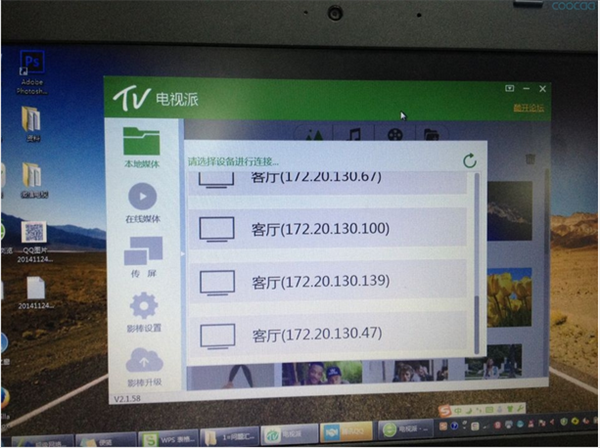 然后啟動(dòng)PC端酷開電視派。電視派會(huì)自動(dòng)查找設(shè)備。看到電視的IP地址沒,那個(gè)就是你家的電視。點(diǎn)擊即可連接。