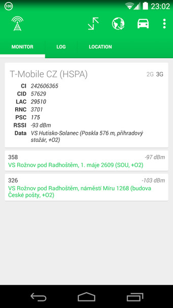 如果你有安卓4.3(或更新版本)Netmonster可以告訴你有關(guān)你當(dāng)前登錄的,而你是在區(qū)域網(wǎng)絡(luò)提供商沒(méi)有信號(hào)單元的數(shù)據(jù)。監(jiān)測(cè)也工作,如果你沒(méi)有一個(gè)SIM卡在手機(jī)中。