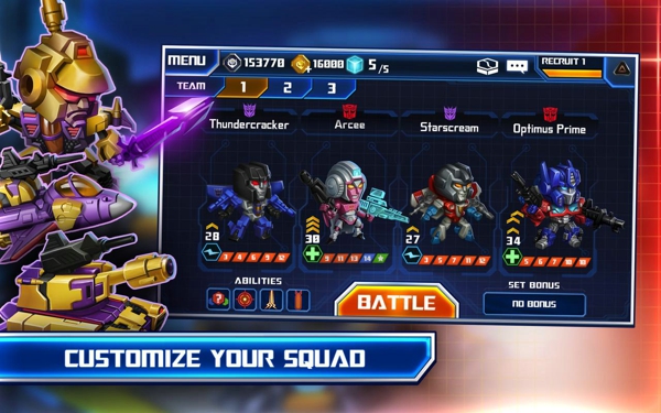 《變形金剛:策略戰(zhàn)術》除了單人對戰(zhàn)模式,還包括即時在線PvP對戰(zhàn)模式,玩家可以在積分榜上與對手一決高下。當投入戰(zhàn)斗時,每一個變形金剛都有特定的統(tǒng)計數(shù)字來支撐他完成變形任務,所以玩家要對他們的技能和屬性有深入的了解,玩家要權衡每一個統(tǒng)計數(shù)字,找到最有效的解決辦法。