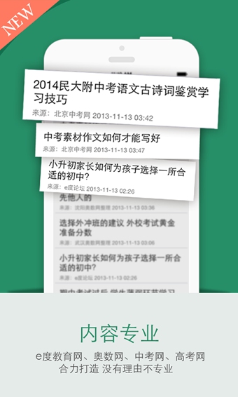 “家長(zhǎng)幫資訊”,E度教育網(wǎng)旗下中國(guó)規(guī)模最大最活躍的教育資訊平臺(tái),無(wú)論你是家有活潑小學(xué)生,還是壓力山大面臨中考的家長(zhǎng),在家長(zhǎng)幫-資訊里都能找到你想要知道的資訊、你必須知道的資訊。不用到處搜索教育新聞,不用擔(dān)心資訊是真是假,掏出手機(jī),升學(xué)資訊,一手掌握。